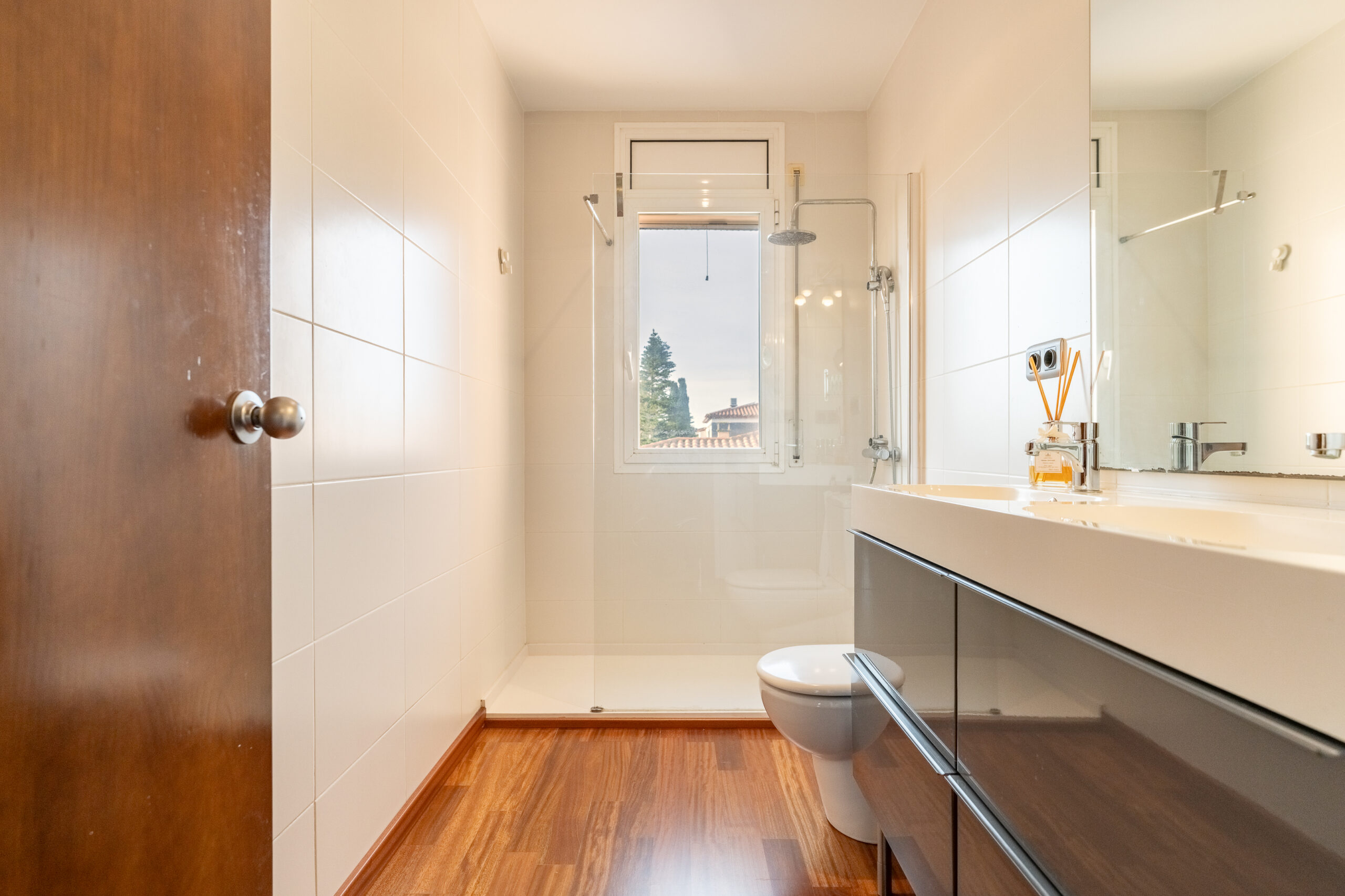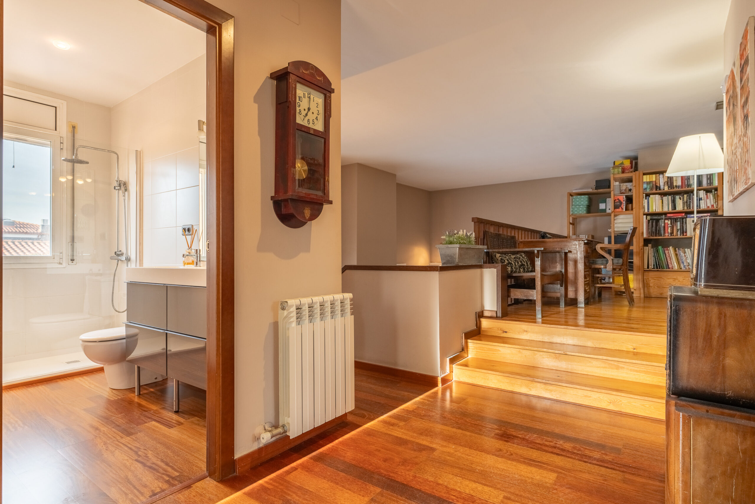 La primera planta es distribueix en 3 habitacions, un bany complert amb dutxa i un espai obert com a despatx.