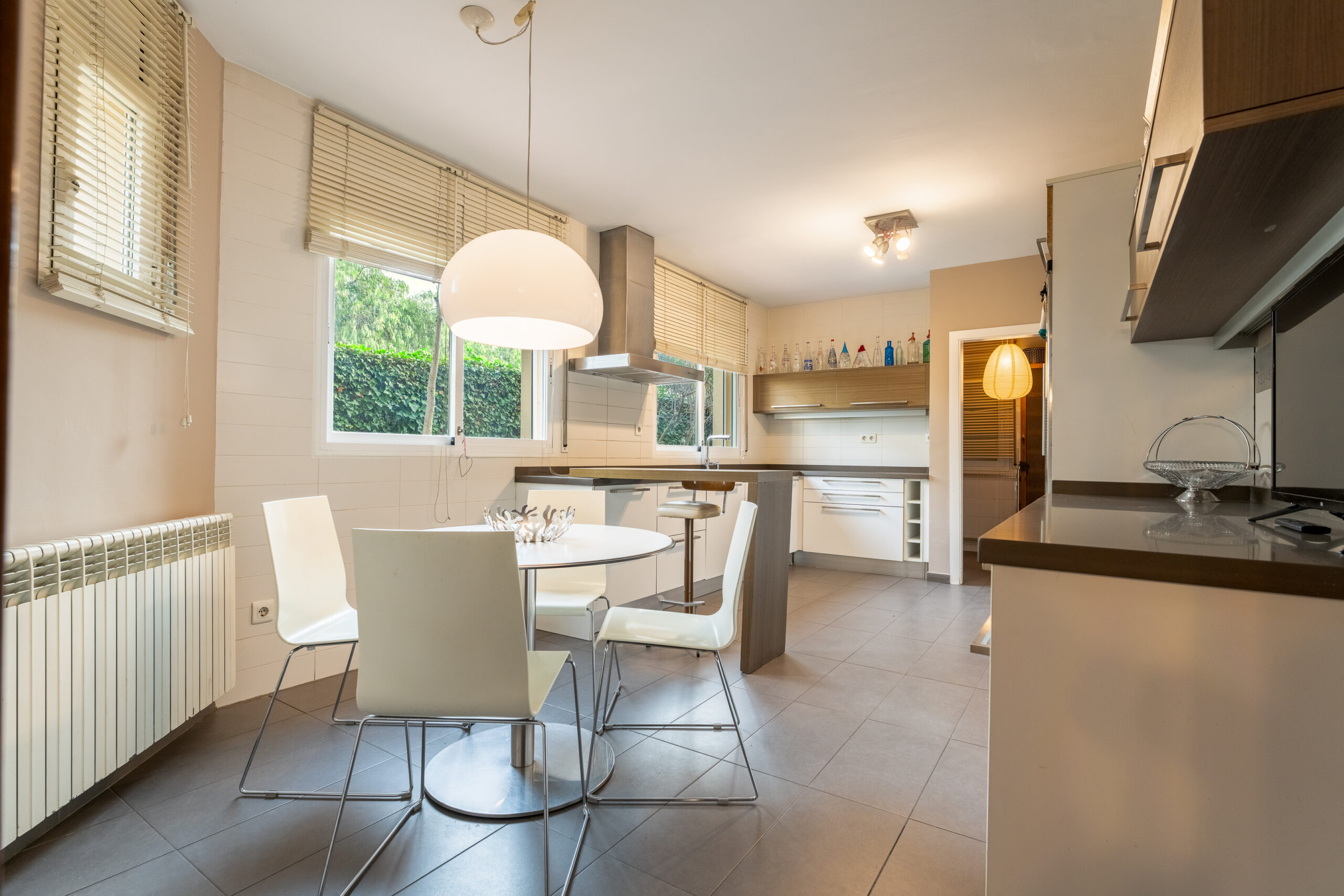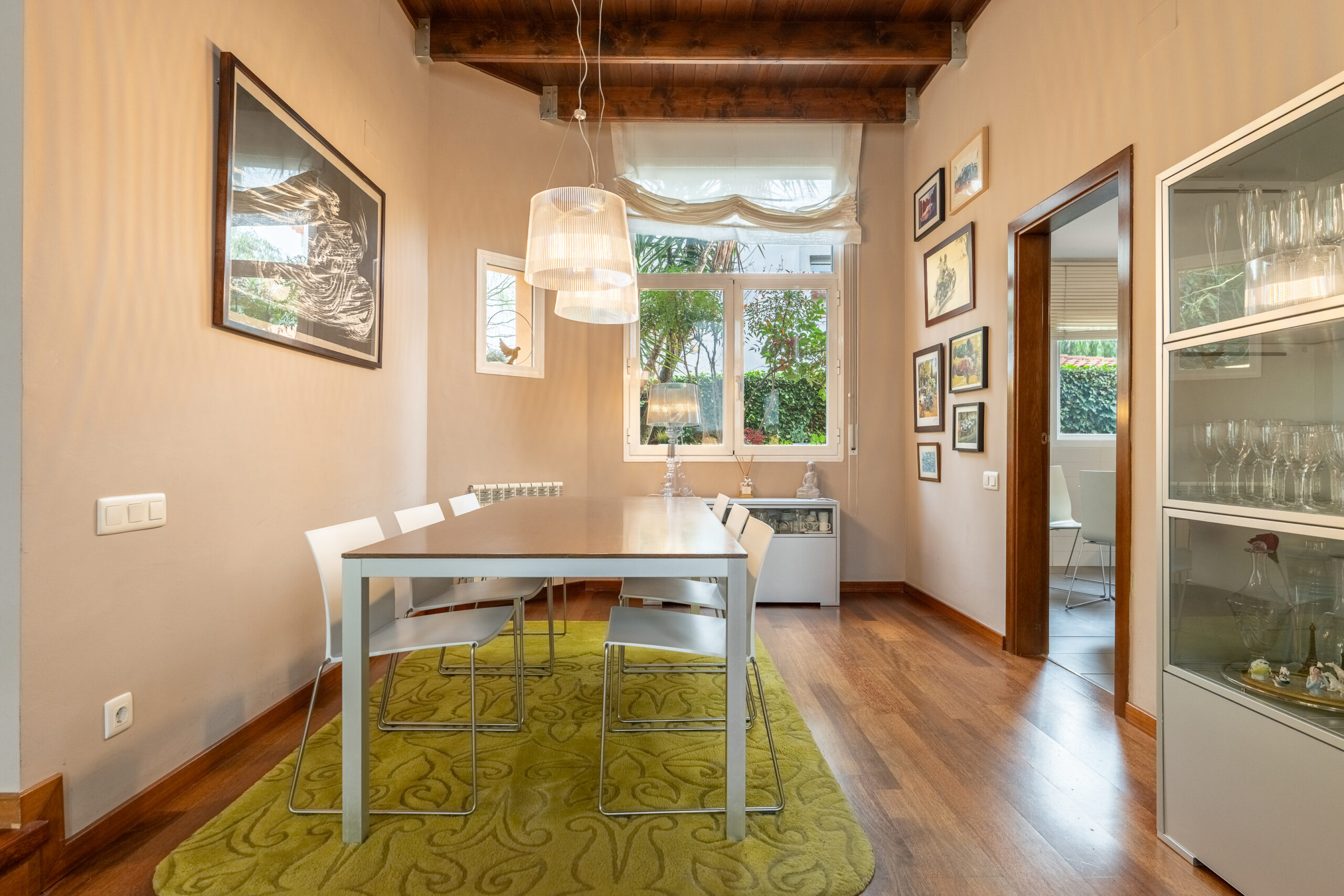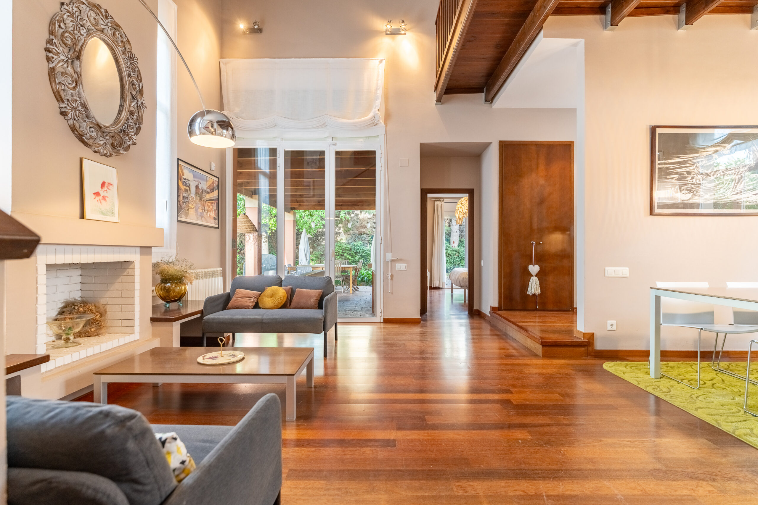A la planta baixa gran saló menjador, amb sortida al porxo, zona de menjador exterior amb aigüera i barbacoa. Cuina independent amb zona office i rebost, habitació doble amb bany complet amb sortida a l´exterior i un bany de cortesia.