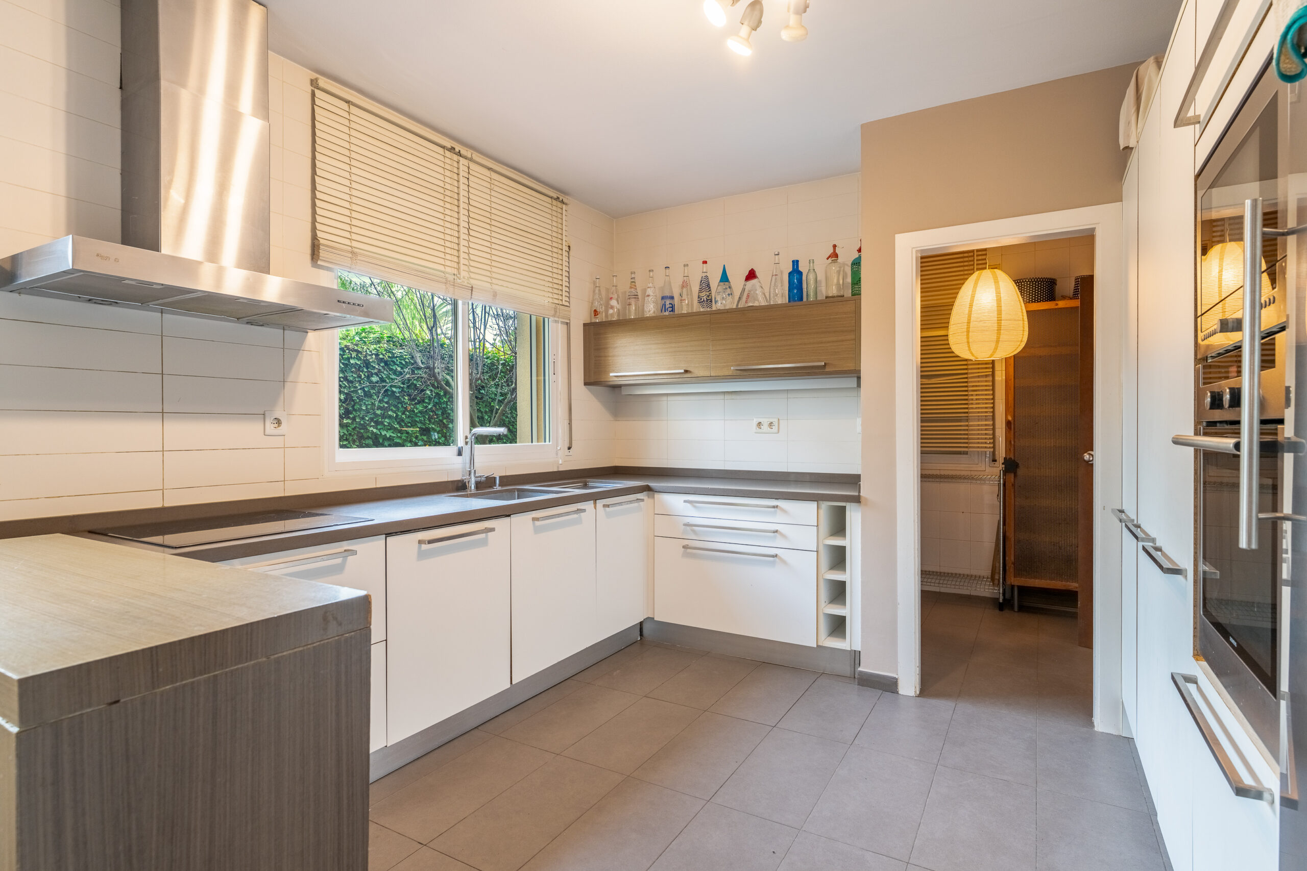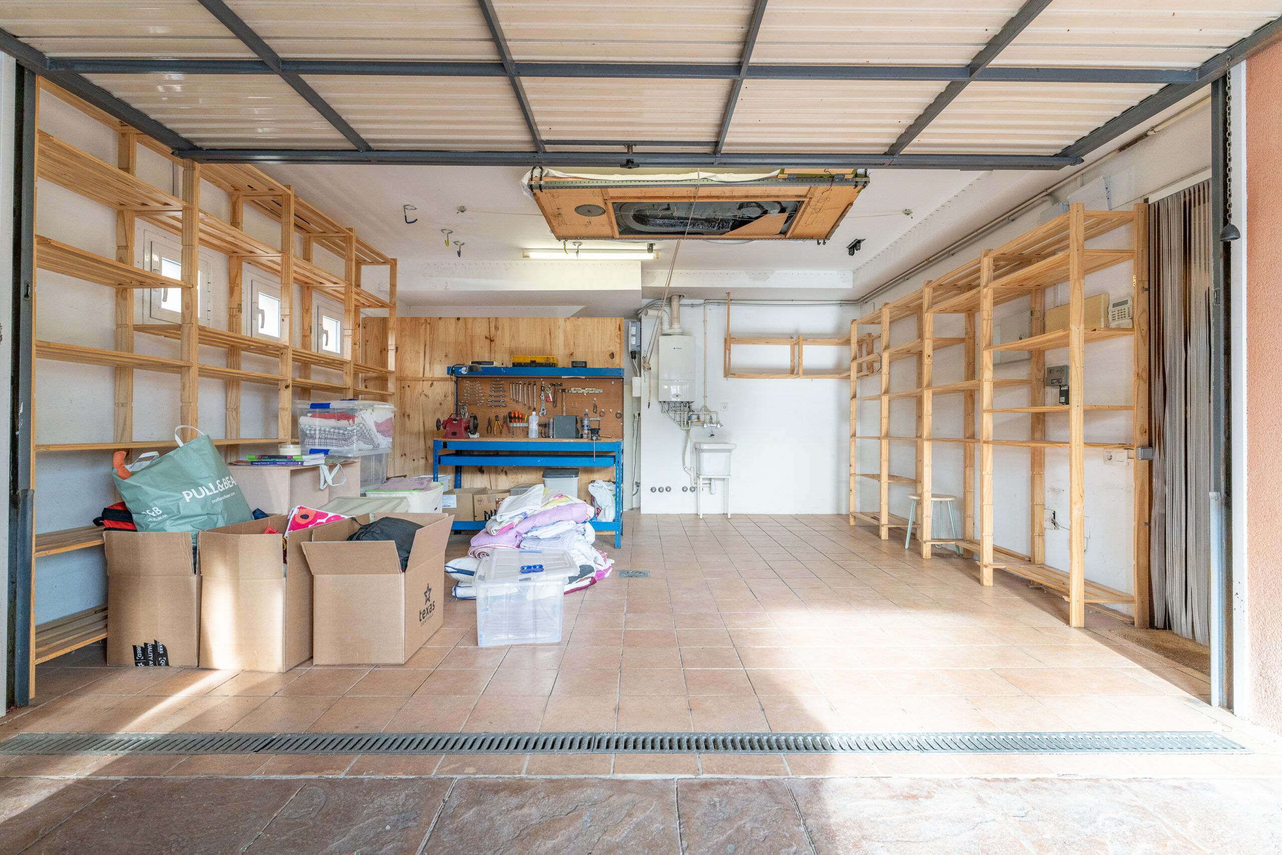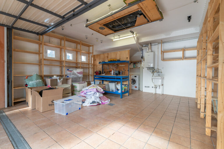 Garatge amb capacitat per a 2 vehicles des del qual accedim al rebost i zona de rentat.