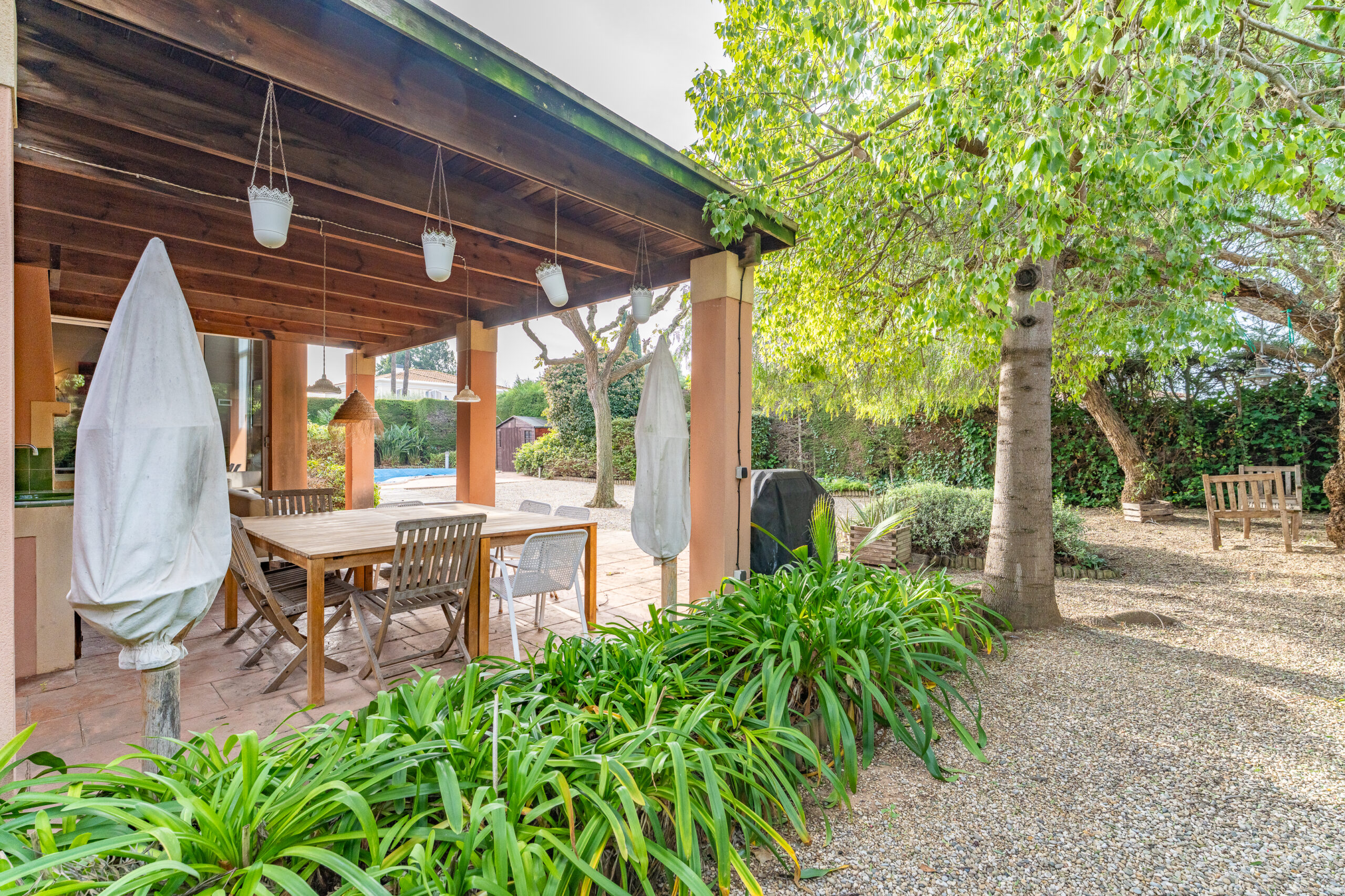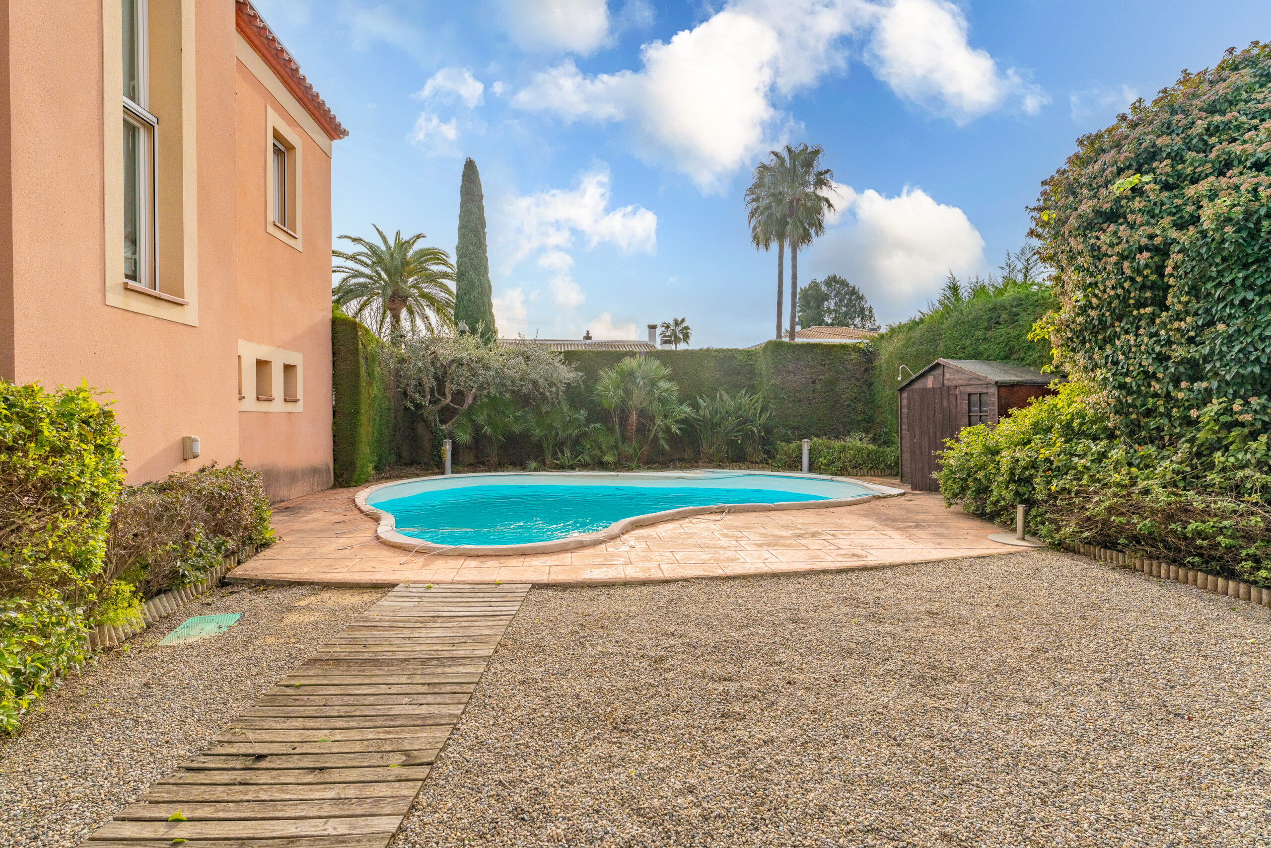 L´exterior de l´habitatge compta amb un jardí privat amb piscina.
